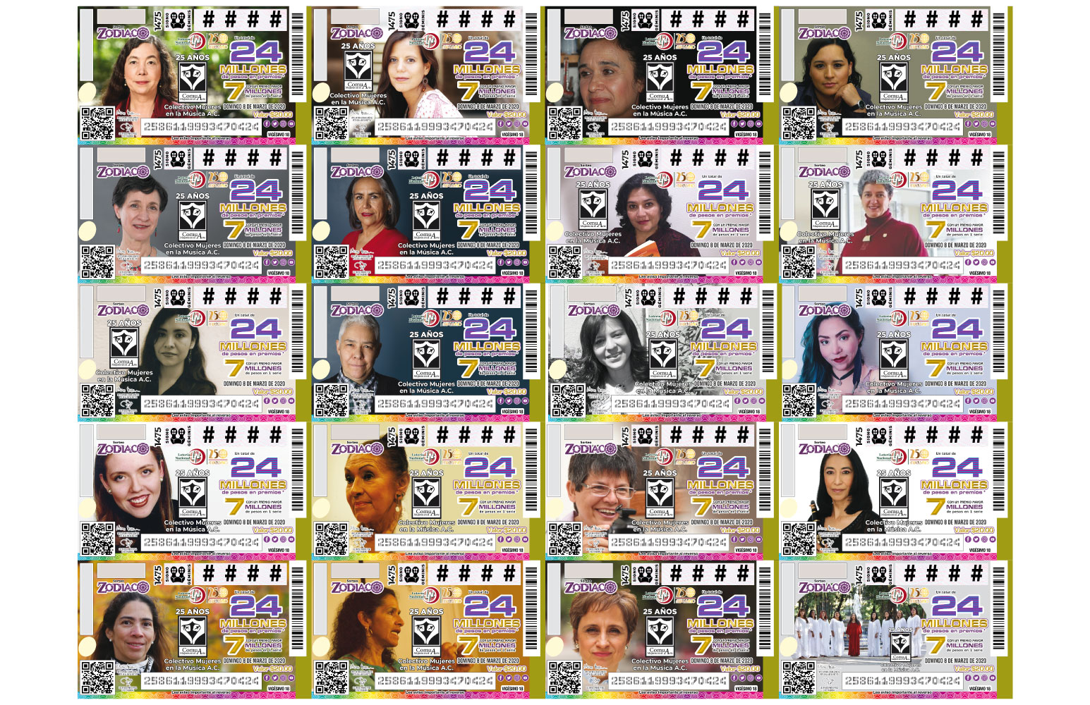 - La Lotería Nacional Homenajea a el Colectivo Mujeres en la Música A.C. y a ComuArte por sus 25 años de labor ininterrumpida y a las 20 mujeres ilustres que han dado vida a su movimiento.