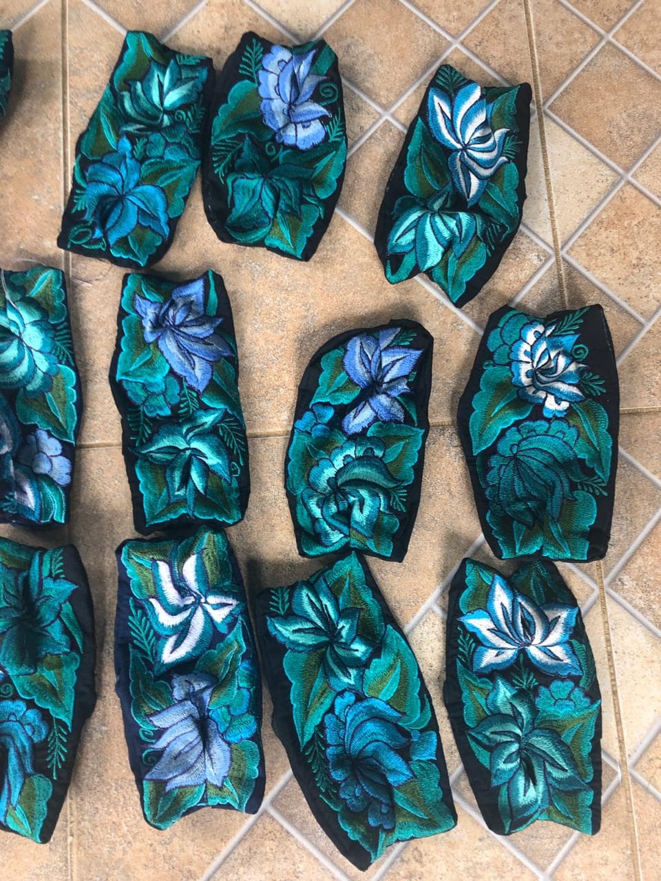 Hermoso cubrebocas elaborado a mano por las artesanas de Zinacantán pertenecientes a la Asociación civil «Mujeres sembrando vida».