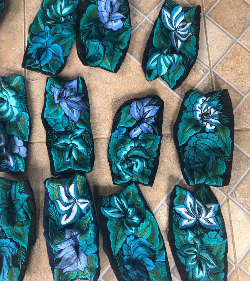 Hermoso cubrebocas elaborado a mano por las artesanas de Zinacantán pertenecientes a la Asociación civil «Mujeres sembrando vida».