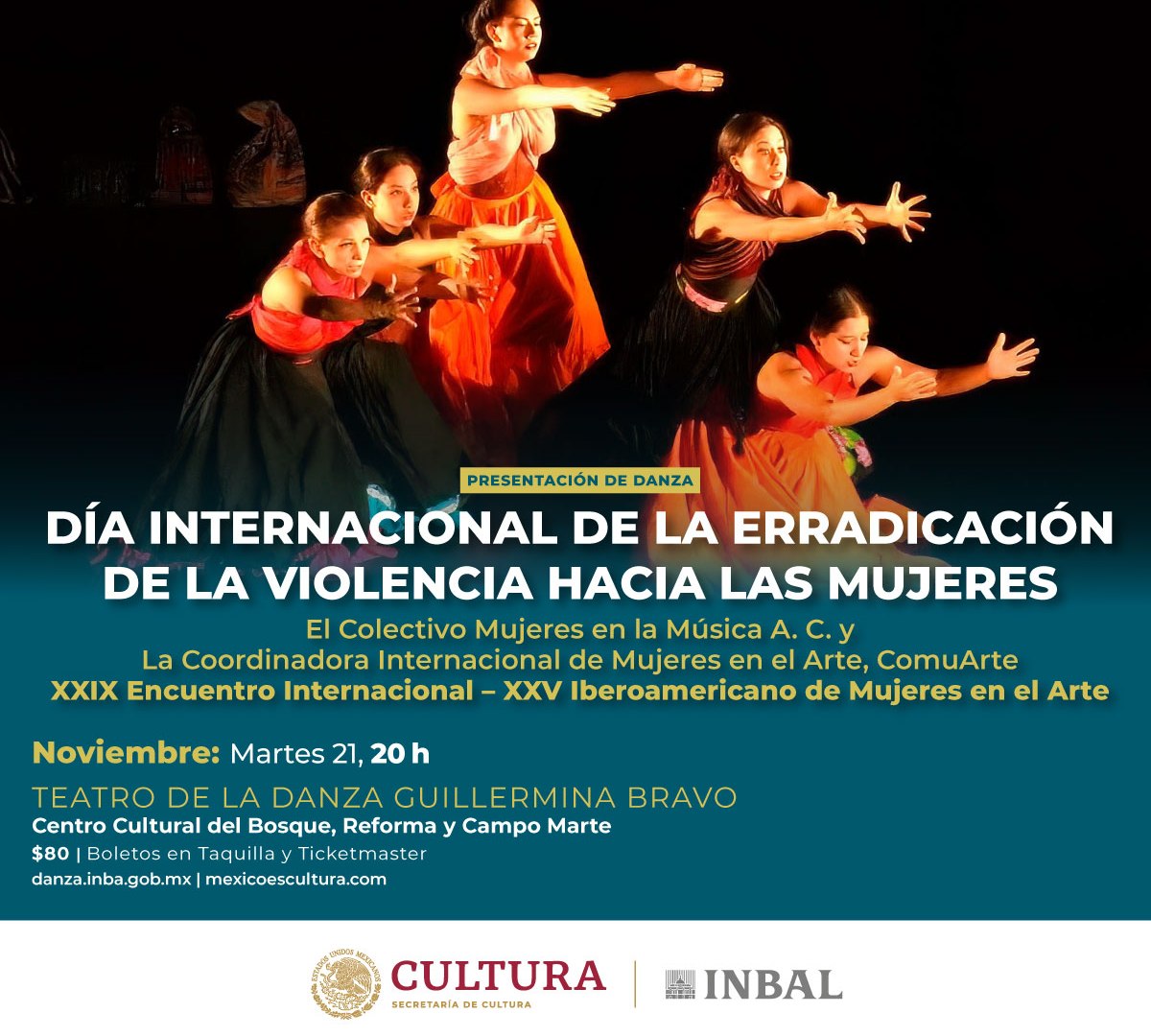 Para conmemorar el Día Internacional de la erradicación de la violencia hacia las mujeres, ComuArte nuevamente estará presente en el Teatro de la Danza “Guillermina Bravo” del Instituto Nacional de Bellas Artes y Literatura, con una función el martes 21 de noviembre a las 20:00 hrs.